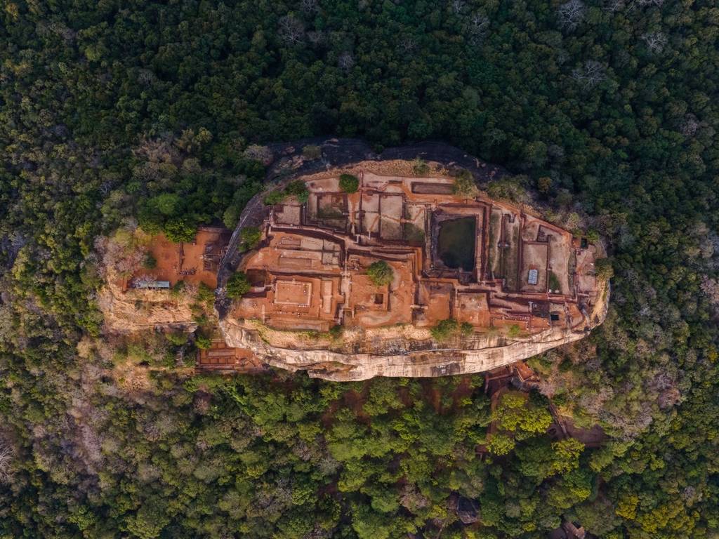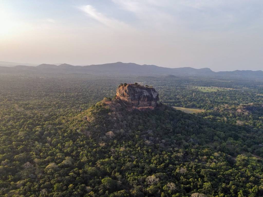 斯里兰卡锡吉里耶,狮子岩是一座古老的岩石堡垒,以其高约200米的巨大岩柱而闻名。