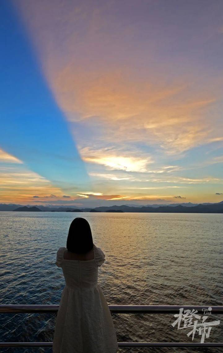 当白昼的喧嚣悄然褪去,月光岛幻境渐启。乘着骑士1号往月光岛出发,游轮推开湖面的粼粼水波,扬帆驶向千岛湖的绝美日落。