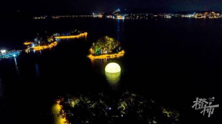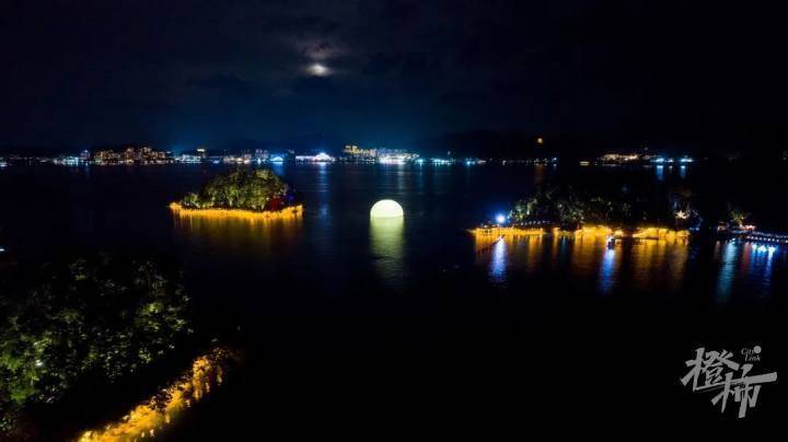 天上月与湖中月交融,岛上人与船上人辉映。浪漫无比。