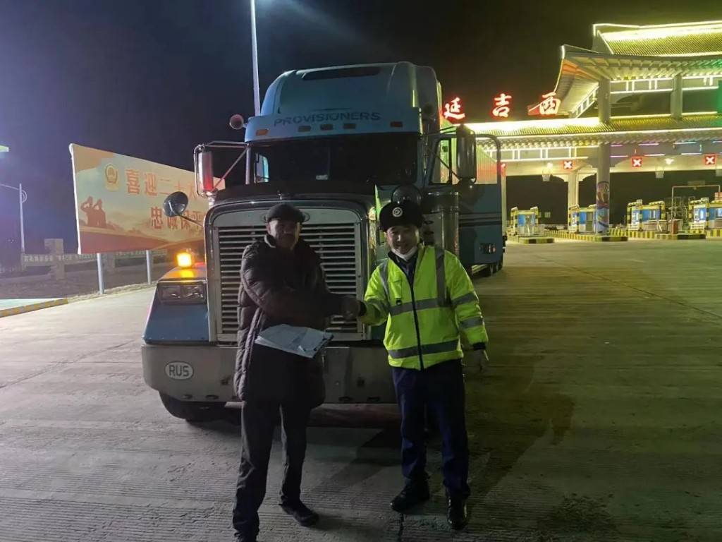 面对语言不通的困境,当班班长下载了翻译软件和司机交流。沟通后了解到,该名司机在珲春卸货后,想要通过珲春口岸返回俄罗斯,可是由于不熟悉道路也不会汉语,18点左右从珲春收费站领卡驶入高速,三个多小时行驶了103公里的路程,一直没找到正确的路,也没有吃饭。当班班长立即将司机带到楼里,给他端来热水和热乎的汤面。同时把司机需要走的路线通过软件翻译成俄语,并把司机的情况、诉求和可能遇到的问题写在纸上,让司机拿好,方便之后与其他人交流。另外还提前和珲春收费站取得联系,帮助其说明情况,确保司机可以顺畅通过。
