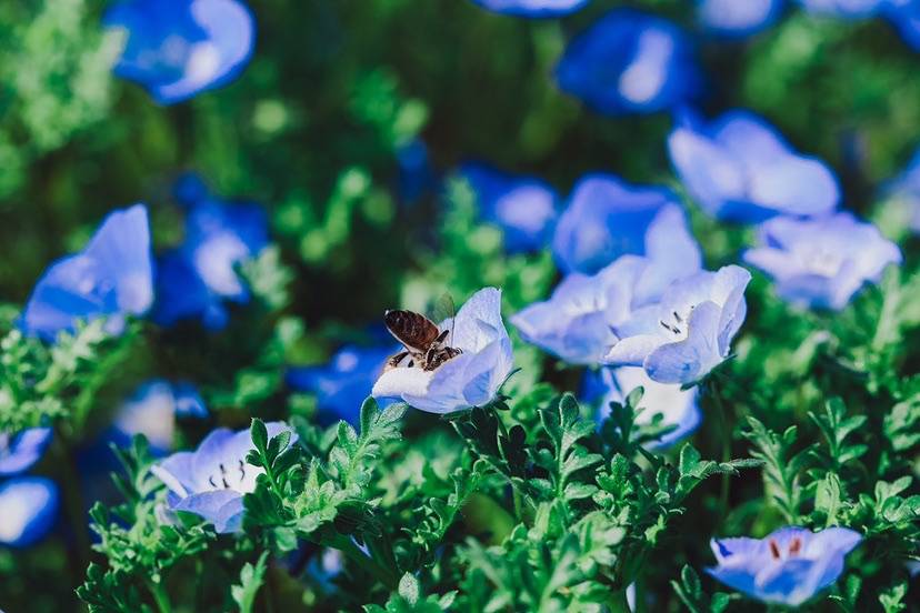 喜林草是田基麻科喜林草属草本花卉,株高20-30cm,匍匐生长,每年9-10月播种,春天3月上旬开花,是加利福尼亚一种通常野花,生长遍及加利福尼亚为主的西海岸, 延伸到俄勒冈和整个加州,高度从海平面到2000米都有它的足迹。喜林草还有一个特别好听的英文名字——“Baby Blue Eyes”(婴儿蓝眼睛),名字应该来源于喜林草花开时中心为白色,花瓣则蓝得非常纯净。