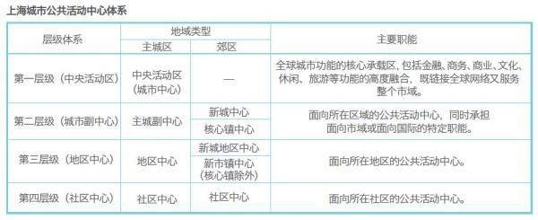 《上海市城市总体规划(2016-2040)》中的城市公共活动中心体系 图片来源:澎湃新闻