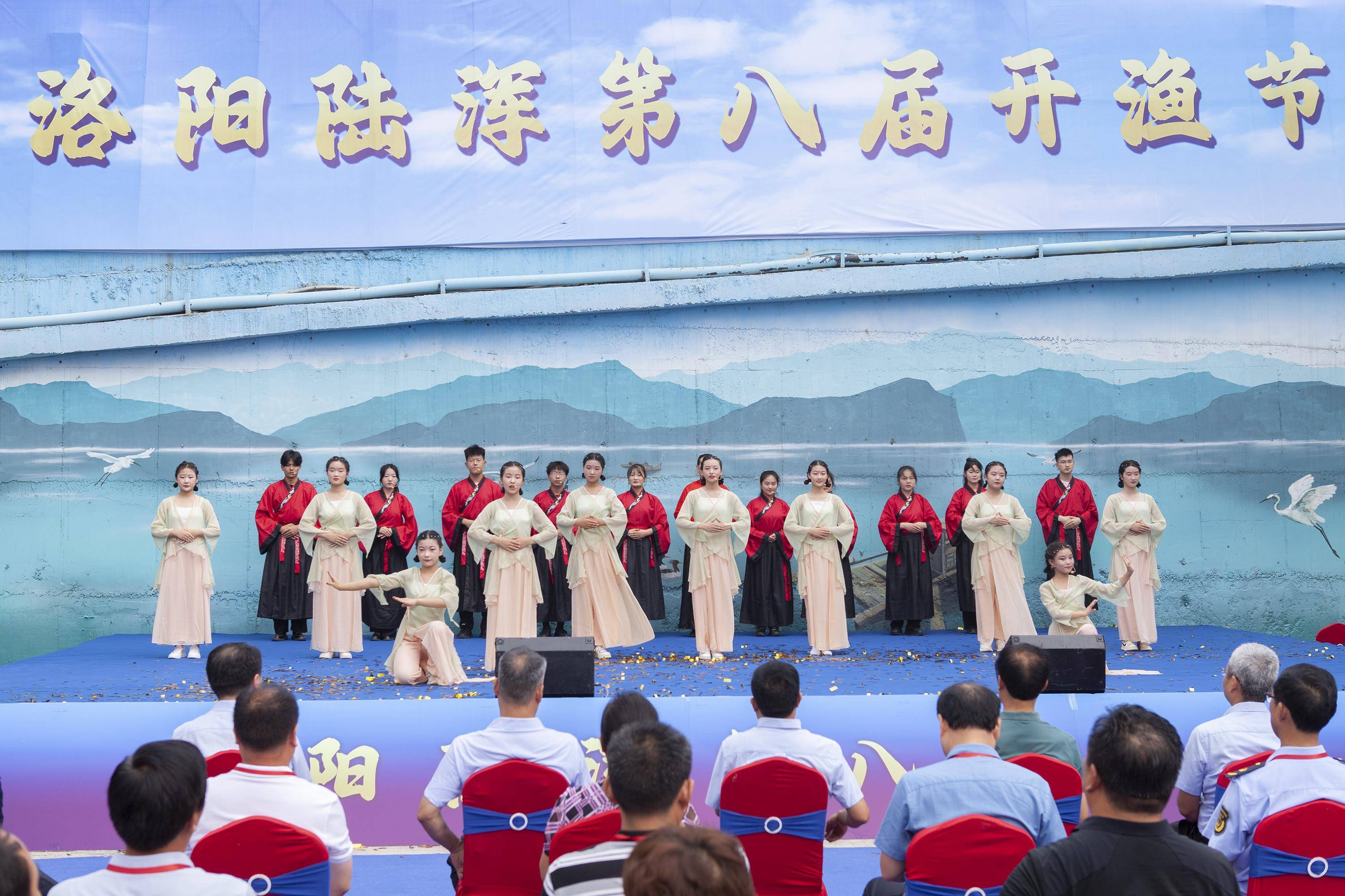 8月8日,洛阳陆浑第八届开渔节开幕,“三代祭湖”“开渔鼓乐”“绿水壮行”等传统民俗表演依次上演,陆浑渔文化展示中心广场成为欢乐的海洋。
