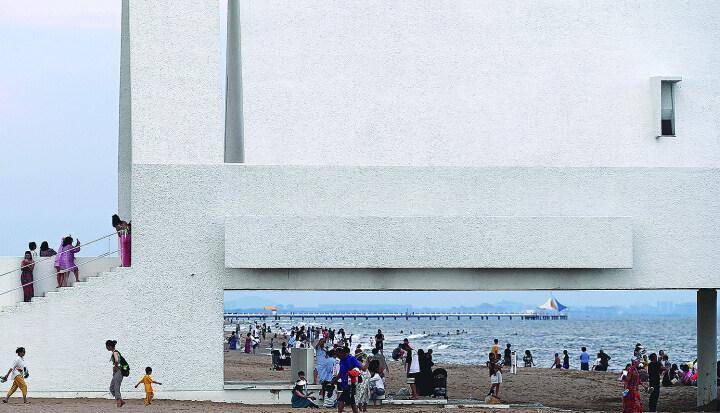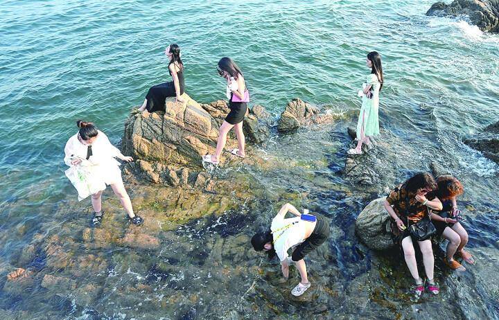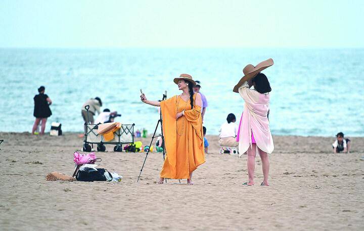 海边游客也是风景。