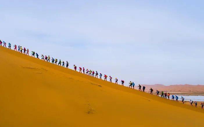 今天是景色最美的一天,高耸的沙丘,蔚蓝的湖泊,曼妙的沙漠曲线都在你的脚下,全程大约27公里,晚上18:00之前可抵达太阳湖营地。