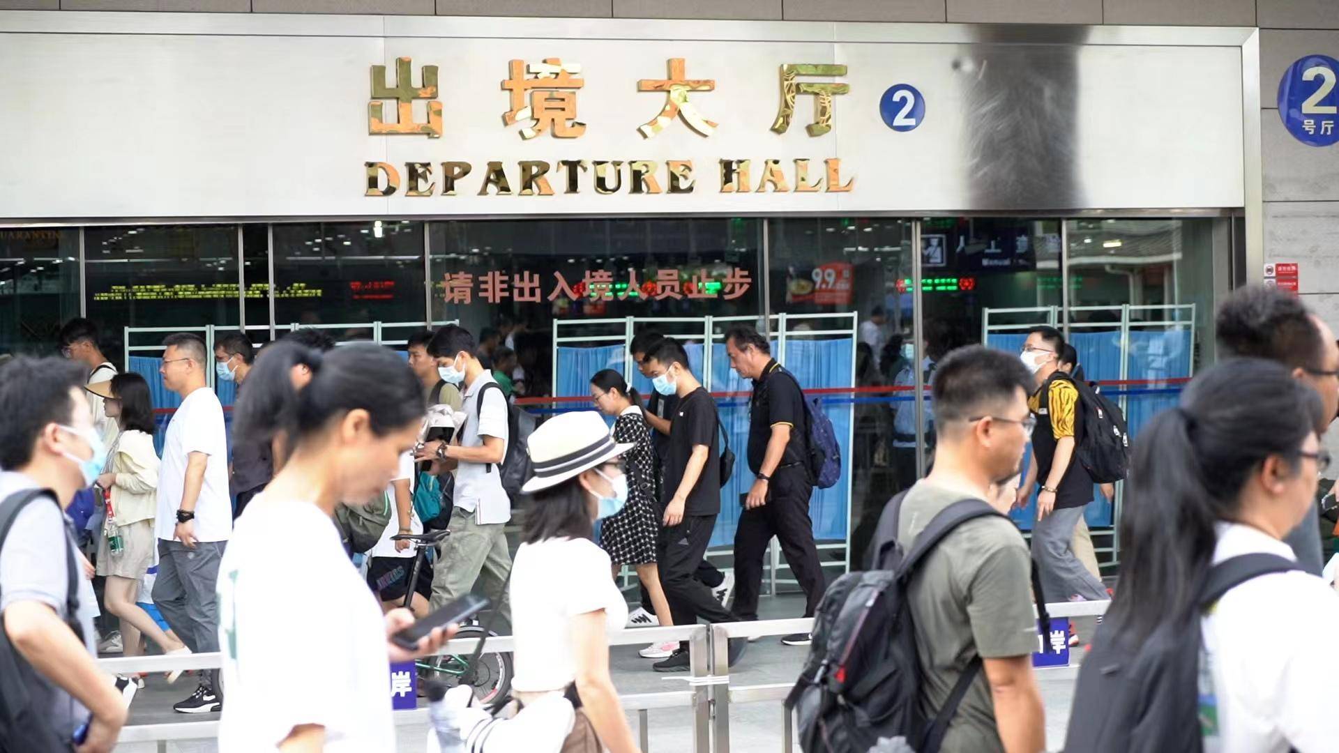 上午9时,拱北口岸出境旅检大厅客流早高峰逐步形成。徐女士一家前一天从江西飞抵珠海,今天一早就带着即将上高中的孩子经拱北口岸前往澳门:“正好现在放暑假,上高中了就没有那么多时间旅游了,所以我们首选就是香港和澳门,带着他多走一走、看一看。”来自吉林的大学生小李和另外3位同学利用排队候检的时间,规划着抵澳后的行程:“我们做了半个学期的攻略,一直想到香港和澳门玩一趟,马上快开学了,我们的计划也终于要实现了。”