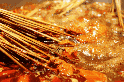 串串是川渝经典的美食之一,将火锅中各色经典菜串在竹签上,在红汤锅里涮过之后,配上特制的干碟或油碟,吃的十分过瘾。