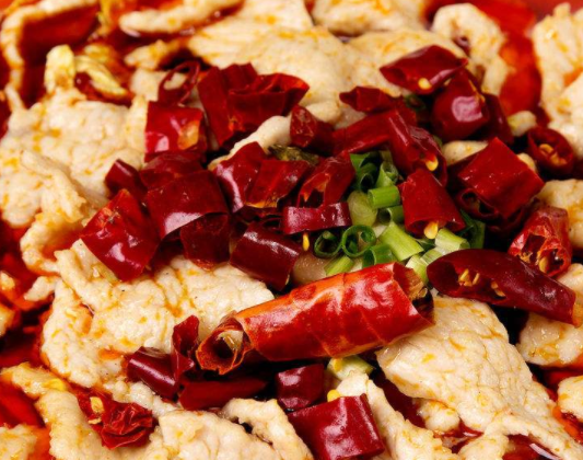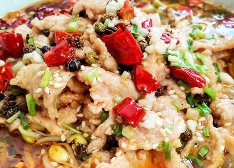 水煮肉片值得一提的是,这种肉的制作法,现在肉片挂糊再烹制,可以保持肉质鲜嫩,易消化,整个过程中没有经过长时间高温油炸,避免了致癌物质的产生,是一种比较科学的肉类烹制法。这个也是很多人喜欢吃这道饭菜的原因了。