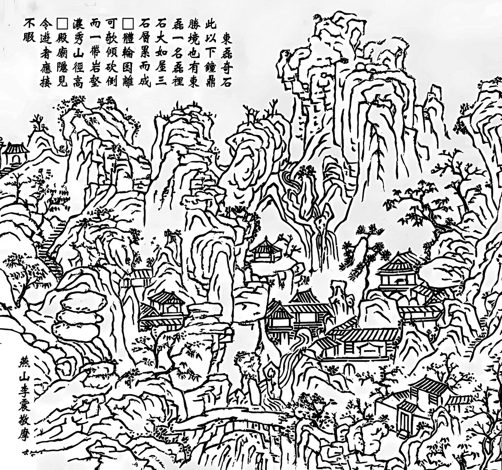 黄申瑾《图二十四景》之十六“东磊奇石”景点,位于云台山南麓,现地属连云港市云台山风景名胜区南云台林场。