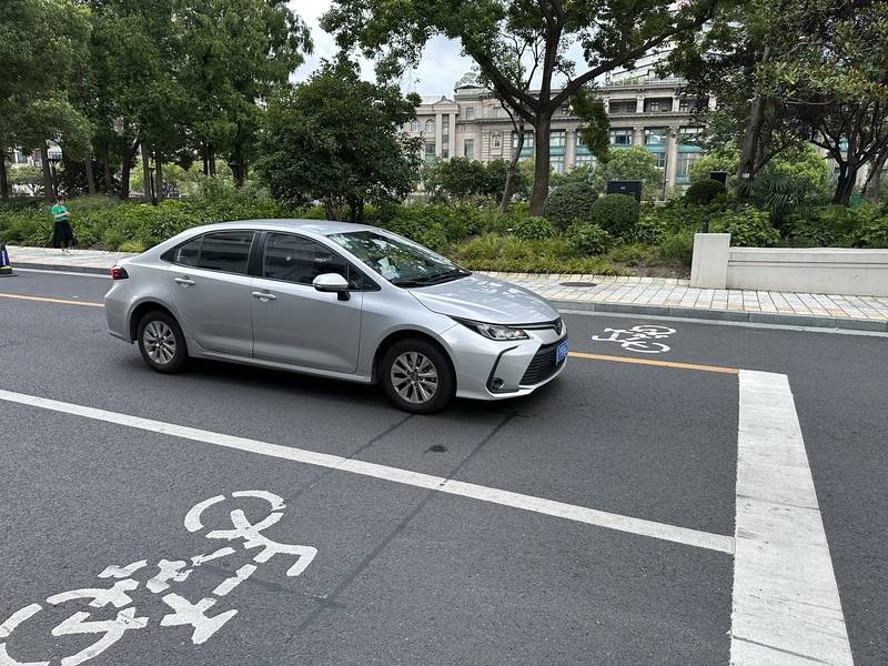 那么,是否在临时停靠时段之外,便可“还路”于非机动车了呢?8月5日晚21时许,记者再次来到南苏州路。随着多辆大巴车从车位离开,马路北侧的黄线区域内已明显没有了此前的拥挤。不过,记者也注意到,空余的车位不断有私家车前来停泊,如此一来,非机动车的行驶条件依然未得到改善。临时停靠时段即将结束,现场仅剩的2名管理员忙着收拾指示牌等设施,并未对违停的私家车过多留意。