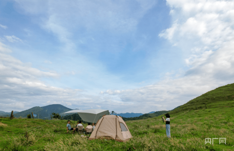 央广网邵阳8月9日消息 炎炎夏季,平均海拔1200米、日平均气温24°左右的新宁县黄金牧场却是蓝天白云、芳草依依、清爽宜人,成为避暑休闲胜地,游客们一边欣赏草山独特的风光,一边享受着阵阵吹拂的无限清凉,美丽风景令人心旷神怡,流连忘返。