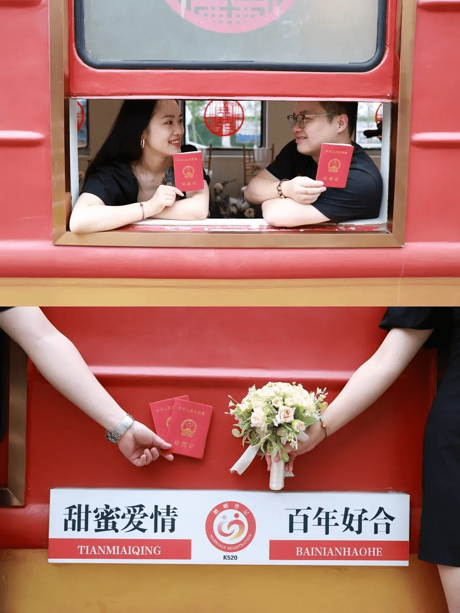 “幸福号”列车由“幸福车头”“心动跑道”等特色场景组成。特别值得一提的是,成都市成华区二仙桥公园婚姻登记处在车厢里设置了办证中心,听说不少铁路职工和新人都选择来这里登记,从这里开启人生新的旅途,留下独一无二的甜蜜记忆。