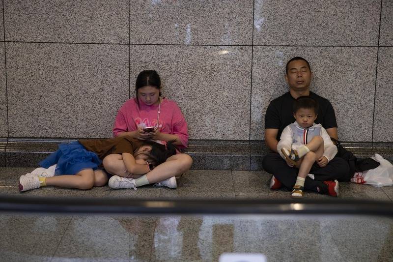 8月8日,上海博物馆参观人数激增,不少家长带着孩子在博物馆欣赏文物,欢度暑假。