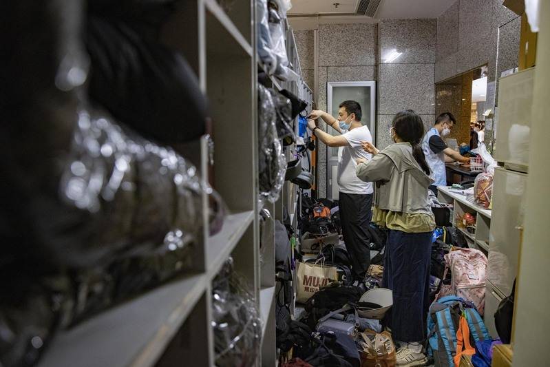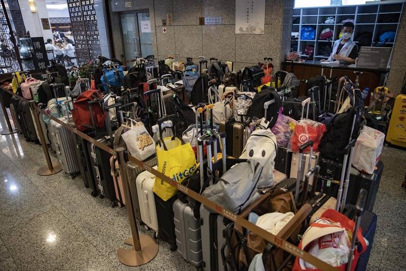 在博物馆一楼的行李寄存处,观众寄存的行李箱堆得满满当当。