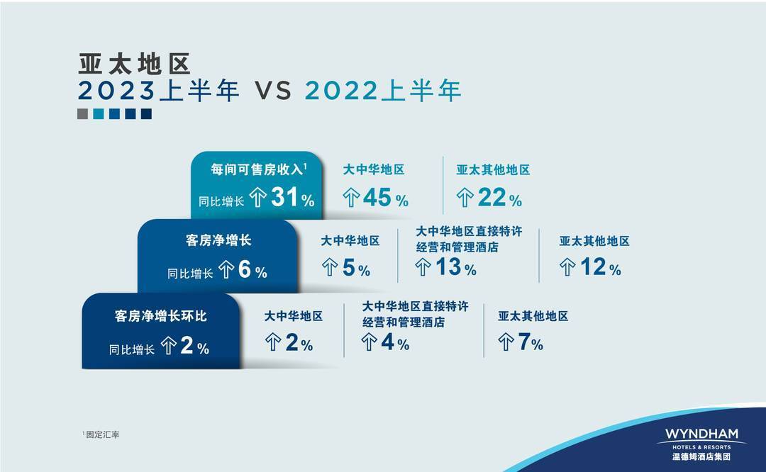 近日,温德姆酒店集团(“温德姆”)公布了其截止至2023年6月30日的上半年“成绩单”。今年上半年在亚太地区的增长势头强劲,取得了31%的每间可售客房收入增长以及新开业酒店为集团在亚太地区带来6%的客房总量增长。