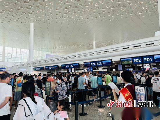 中新网湖北新闻8月8日电(屈晓妮 周裕坤 刘振威 翟雨晨)随着暑运与旅游旺季的到来,武汉机场迎来了一波旅客“高峰”。8月6日,武汉机场运输旅客9.14万人次,同比2019年同期增长14.6%,同比2022年同期增长67.9%,单日旅客吞吐量创今年新高。