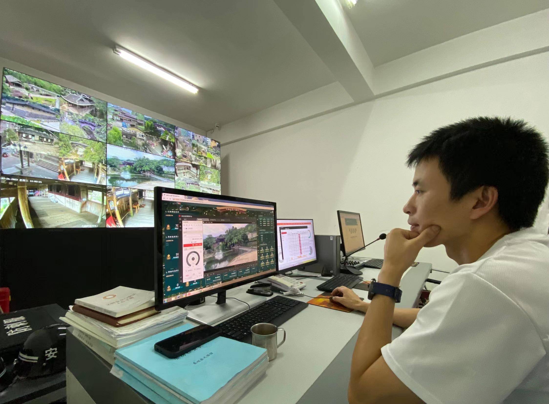 工作人员使用文化遗产监管保护平台监测廊桥情况。新华社记者 魏一骏 摄