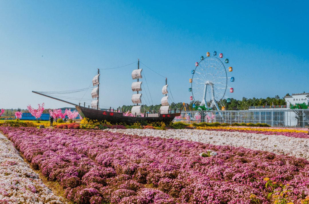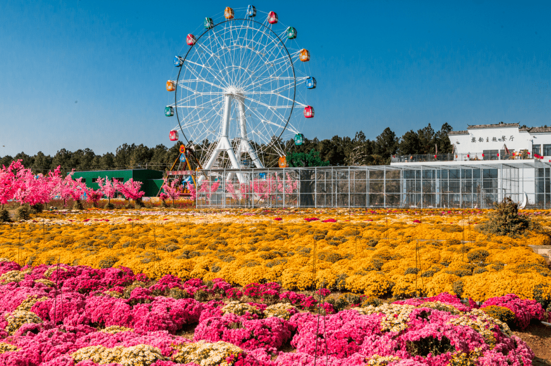 渔歌小镇•菊园位于浙江省金华市孝顺镇低田下马村,座落于金华与义乌交界处的东阳江畔,园内主要种植菊花,现已引进切花菊、传统菊、金陵菊、钟山菊四大系列,300多个品种,约100万盆菊花。