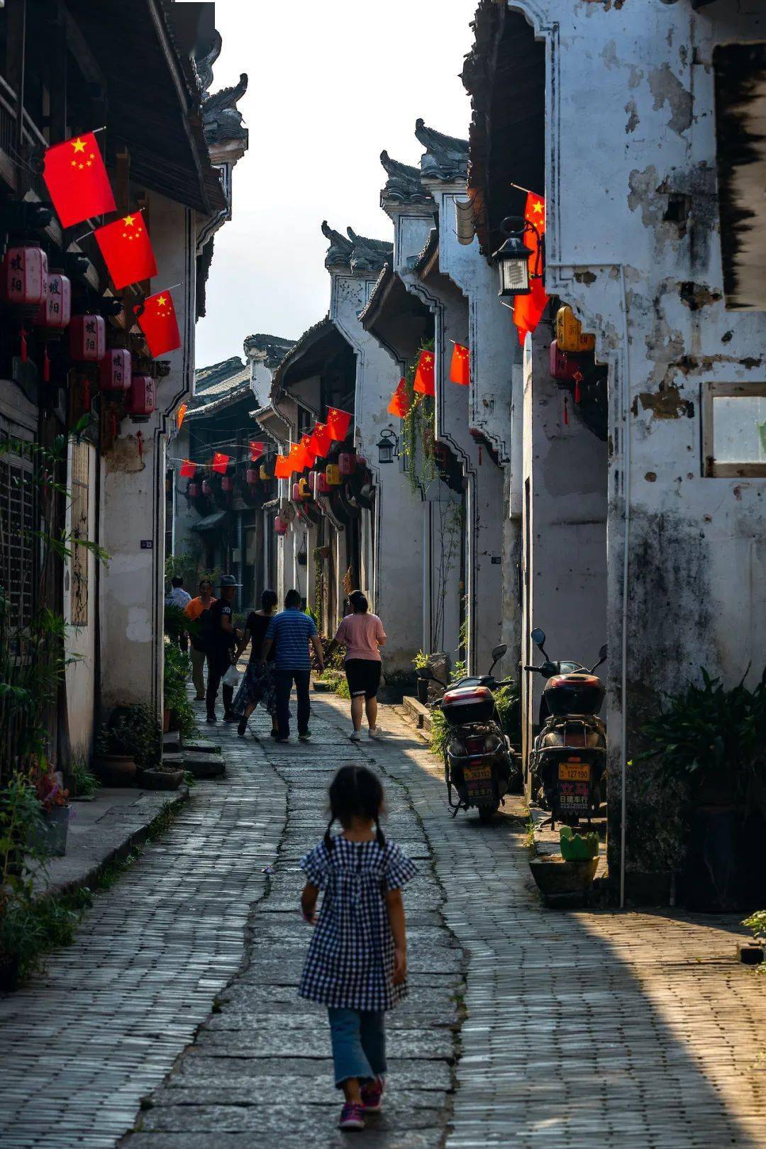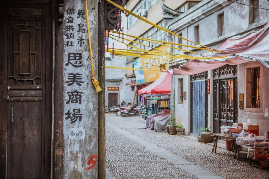 笔直的街道上,一些角落还残留着曾经的辉煌。路两旁的屋舍都是明清时期的风格,门廊和雕花仿佛把时间冻结在了过去。