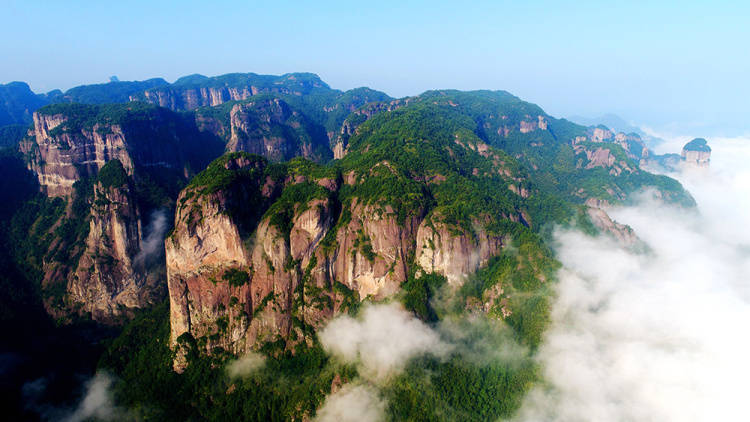 神仙居,位于浙江丽水市景宁畲族自治县的天目山脉中,是一个古老的山庄拥有深厚的道教文化底蕴。这里环境优美,山峰、溪流、瀑布和众多古建筑尽显它的神秘和美丽,同时,古老的建筑群体也镌刻了这个山庄深受历史和文化熏陶的印迹。日观楼、夜观楼、三清宫、广西楼、畲族博物馆,每一处古迹都交织着道教信仰、民俗文化、艺术人文等灿烂的历史文化元素,让游客领略深厚的道教文化底蕴。