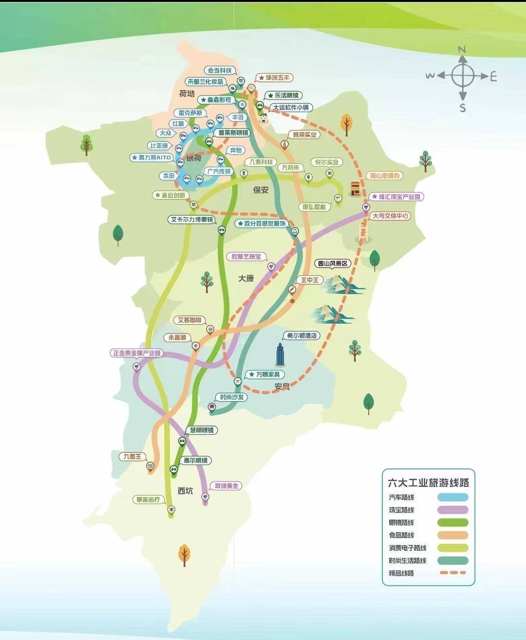 为积极落实深圳市委市政府“我帮企业找市场”工作部署,推动深圳工业旅游更具多样性,园山街道聚焦辖区汽车、珠宝、食品、眼镜、消费电子、时尚生活等特色板块,全面整合工业旅游点位,在全市首发“可看、可玩、可购、可体验”的精品六大工业旅游线路,吸引四面八方的市民游客纷至沓来,品味园山特色产业的“味道”。