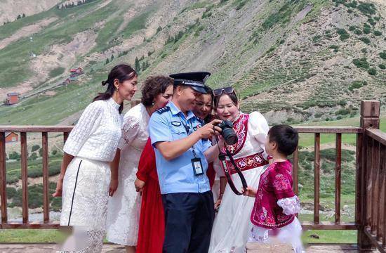 中新网新疆新闻8月8日电(覃社伟)为确保辖区景区治安秩序,保障游客安全舒心畅玩,恰提铁列克边境派出所蓝盾先锋队全面开启护游模式,全员思想上“绷紧弦”、行动上“拉满弓”、服务上“高效率”,四个聚焦为游客舒心游览添“警”色。