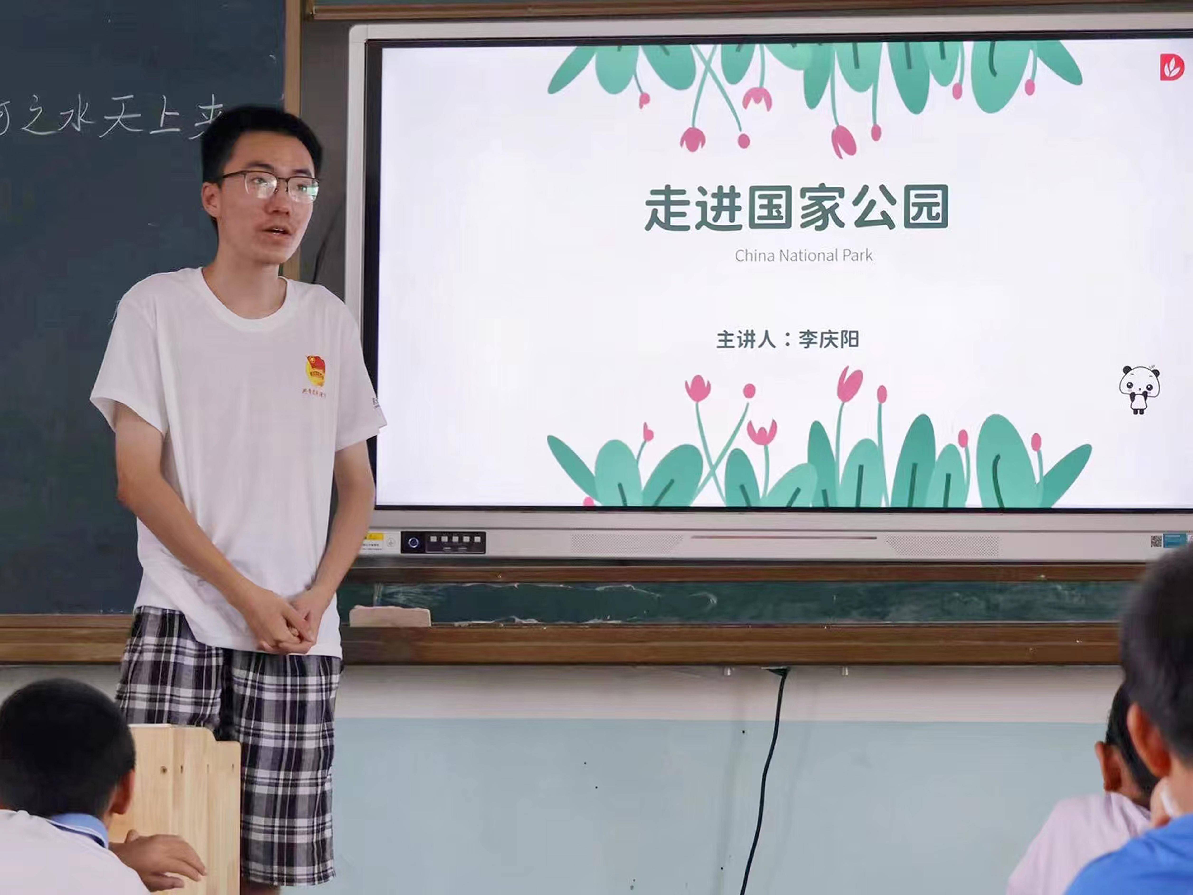 志愿者在为同学们科普中国国家公园的定义及用途。 胡明 摄
