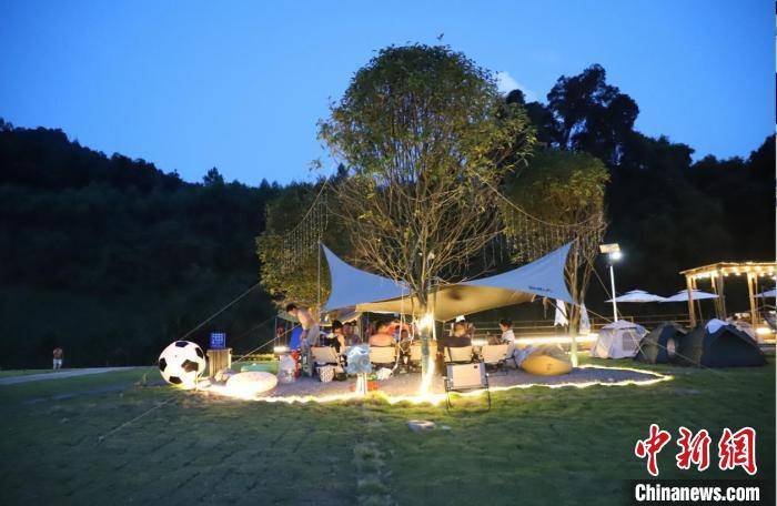 夜幕下,游客在金秀瑶族自治县长垌乡滴水露营基地露营。赵钰倩 摄