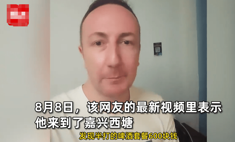近日,一名外国游客在西湖游玩时表示杭州的景色非常漂亮,但是一瓶矿泉水要6块,感觉太离谱。 8月8日,该网友的最新视频里表示他来到了嘉兴西塘,以为物价不会太贵,却发现酒吧街半打啤酒要600块。