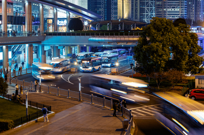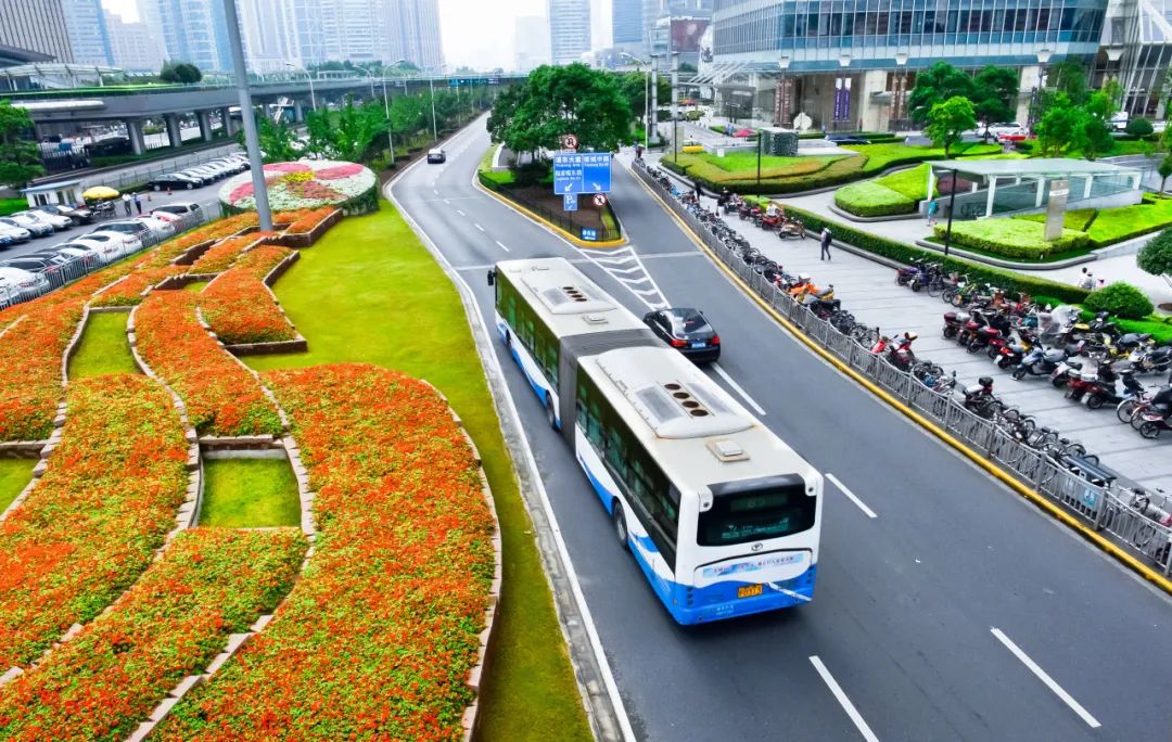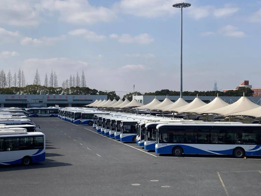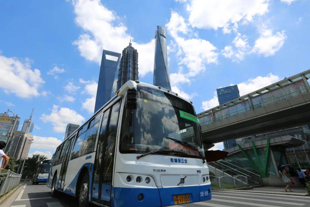 上海有许多外观蓝色的公交车,它们大多来自浦东↓