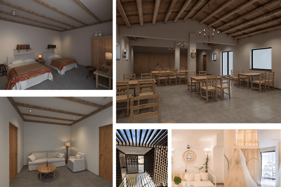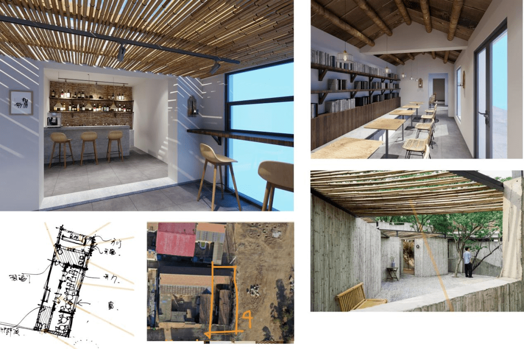 1、2号院互相联通,利用原有结构,融合小型酒吧和儿童娱乐,打造现代和中式相结合的汉文化、农耕文明主题酒店。