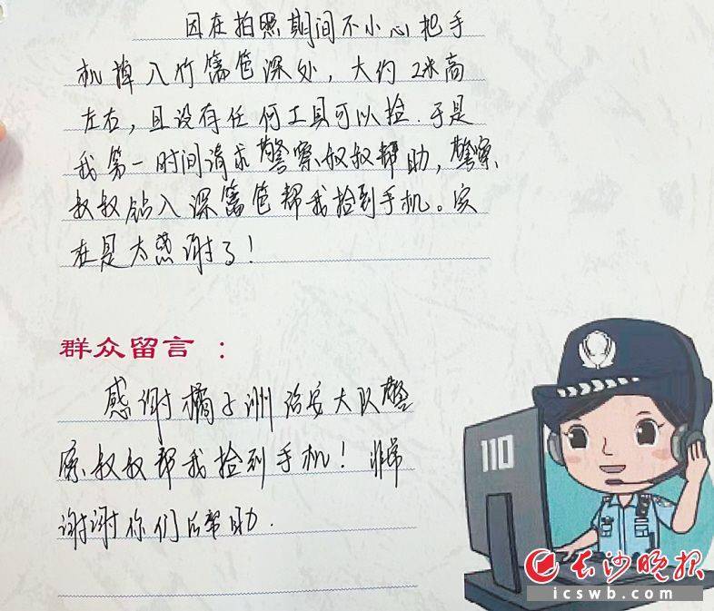 “非常感谢工作人员帮忙,在最短时间找到我走失的孩子。”7月23日的这段留言,是河南籍游客李女士所写。当日,她与两个孩子在橘子洲头的人群中走散,民辅警立即联合保安从多个方向寻找,很快找回孩子,让李女士的焦心化为了安心。