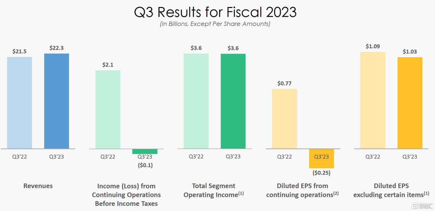 财报显示,二季度,迪士尼收入为223.3亿美元,低于预期的225.1亿美元,同比增长3.8%;每股收益为1.03美元,高于预期的0.99美元,而去年同期为1.09美元。