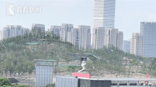 看看新闻Knews记者陈弋看到:“在这儿未来会呈现出上海绝无仅有的瀑布景观。瀑布在哪里,其实就在我身后的这个已经完成黑色防水层施工的部分,从山顶一路往下倾泻流淌而来,一直汇聚到我们看到的中心湖的位置。”