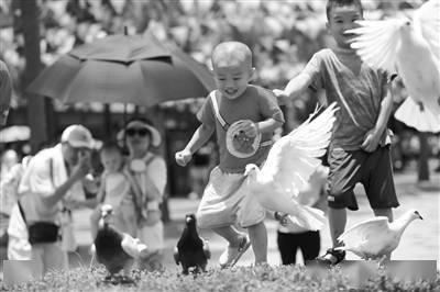 8月5日,小朋友在海南省三亚市南山文化旅游区游玩。 新华社发(陈文武摄)