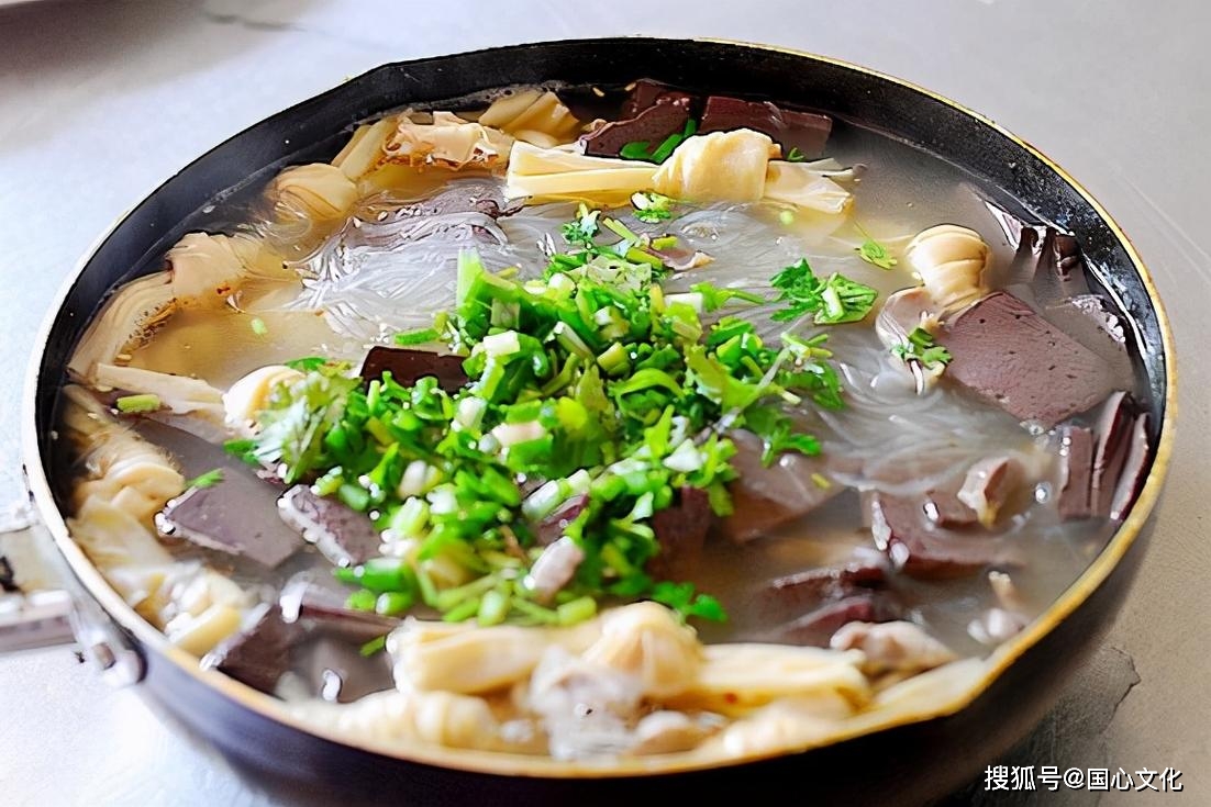 鸭血粉丝汤是江苏南京的一道特色名小吃,也是金陵小吃的重要代表之一。它以整只鸭熬汤,煮好的鸭血滑嫩、鸭胗柔韧、鸭肠爽滑、鸭肝绵软、鸭汤清鲜,再配上Q弹有嚼劲的粉丝,吃上一口,清淡爽口,鲜香咸口,成为南京当地人最爱吃的小吃之一。鸭血粉丝汤的制作讲究,各地都采用不同的鸭血,南京则采用鸭血,这种特色美食在南京流传已久。无论是口感还是口味,鸭血粉丝汤都是南京不可错过的美食之一。