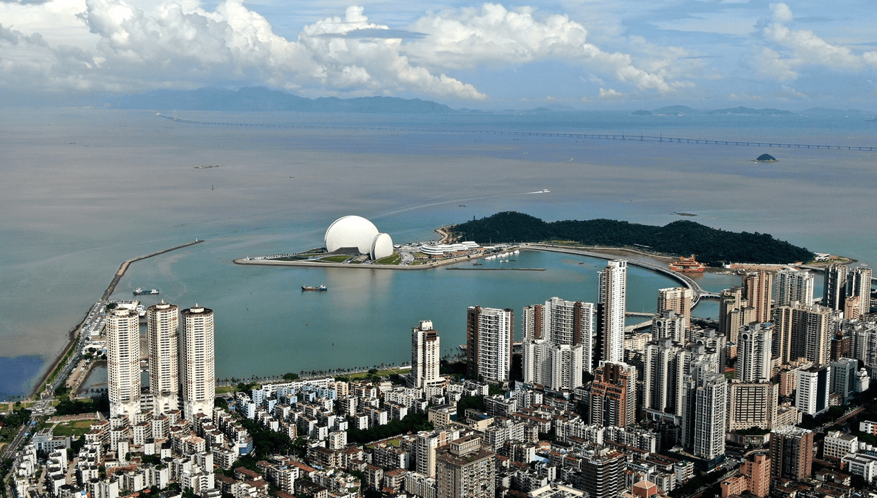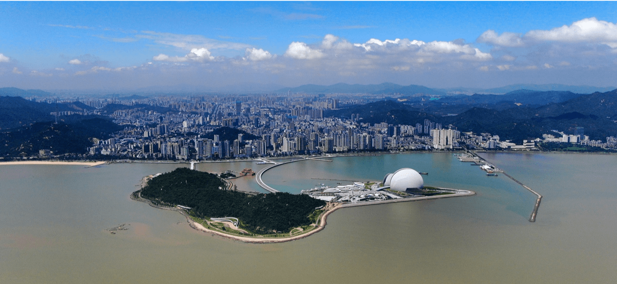 3.野狸岛、日月贝:野狸岛以新月桥与闹市区相连,是离珠海市区最近的海岛。珠海大剧院是中国唯一建设在海岛上的歌剧院,由一大一小两组“贝壳”组成,构成了歌剧院的整体形象,因此得称“日月贝”。