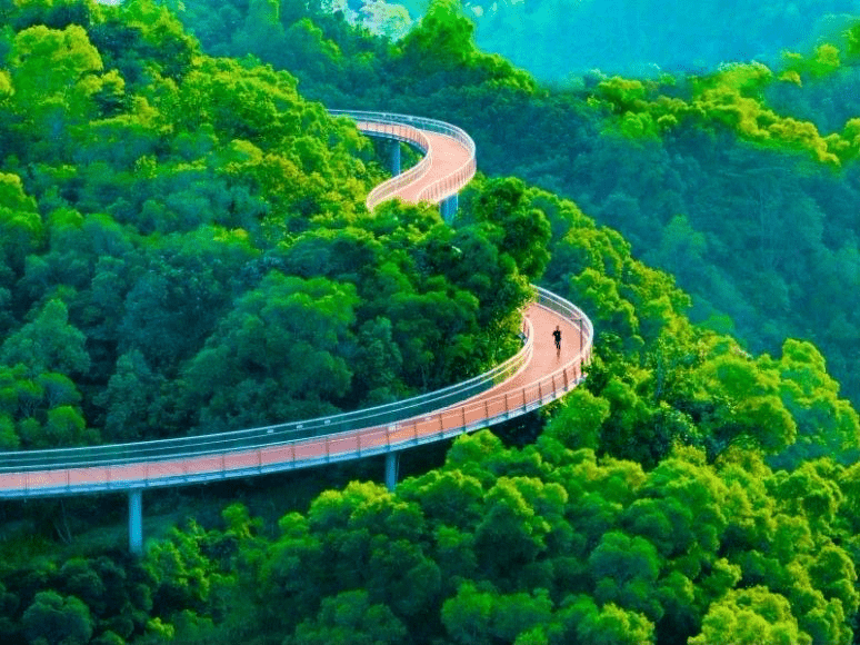 1.香山云道:山峦苍翠、水光潋滟。作为香山云道四大主题线路中的“观水段”,香山云道香山湖——大镜山西入口段全境位于山林之中,途经大镜山水库,是一条依托自然山水而打造绿色健康空中步道。漫步云道,感受山林间清新的空气,云雾在山间流淌。绿意青葱,鸟鸣悠悠。