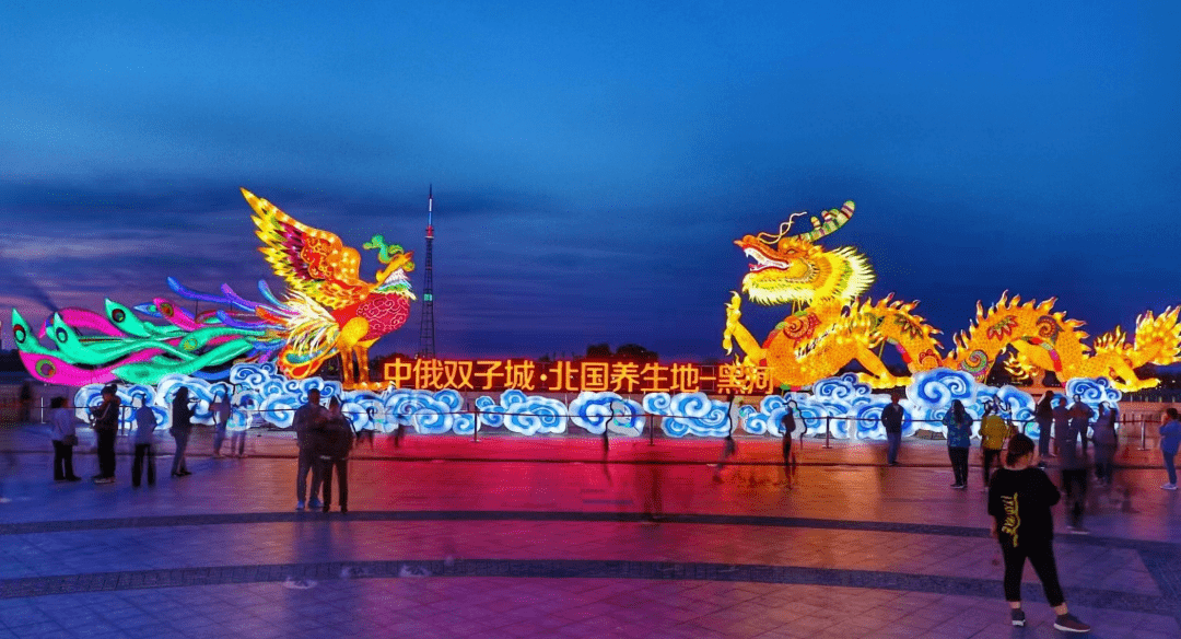 傍晚时分,江边的民间花灯展依然尽情吐露着她的风情,龙凤呈祥主花灯熠熠生辉,与北方穹顶之下独有的璀璨星河遥相点缀,至此感受中国人刻进骨子里的浪漫。