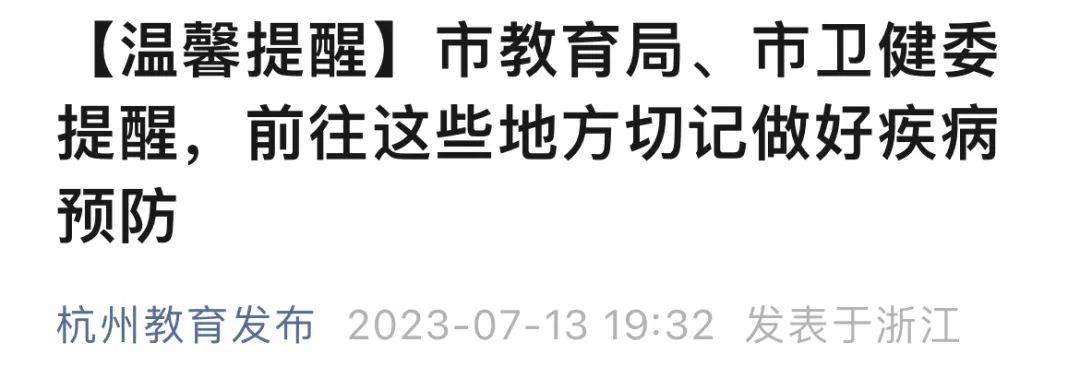7月13日,杭州市教育局、市卫健委也曾发出提醒:当前东南亚、南美洲、非洲等国家登革热疫情较为严重,暑假期间如若前往旅行,请做好预防措施。