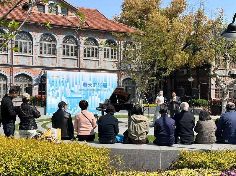 4月8日下午,“百年公园 滨河赏春”——“何以爱长宁”徒步微旅行活动来到了苏州河华政段,市民们以百年公交、百年马路、百年公园、百年古树、百年校园、百年建筑等长宁“六个百年”为主题,从20路公交站出发,漫步万航渡路、中山公园,邂逅法国梧桐,打卡华东政法大学校园,游览格致楼、獬豸苑等校园人文景观,最后行至苏州河华政段滨河步道的“法剧场”,观赏一场钢琴与民乐碰撞的演出。
