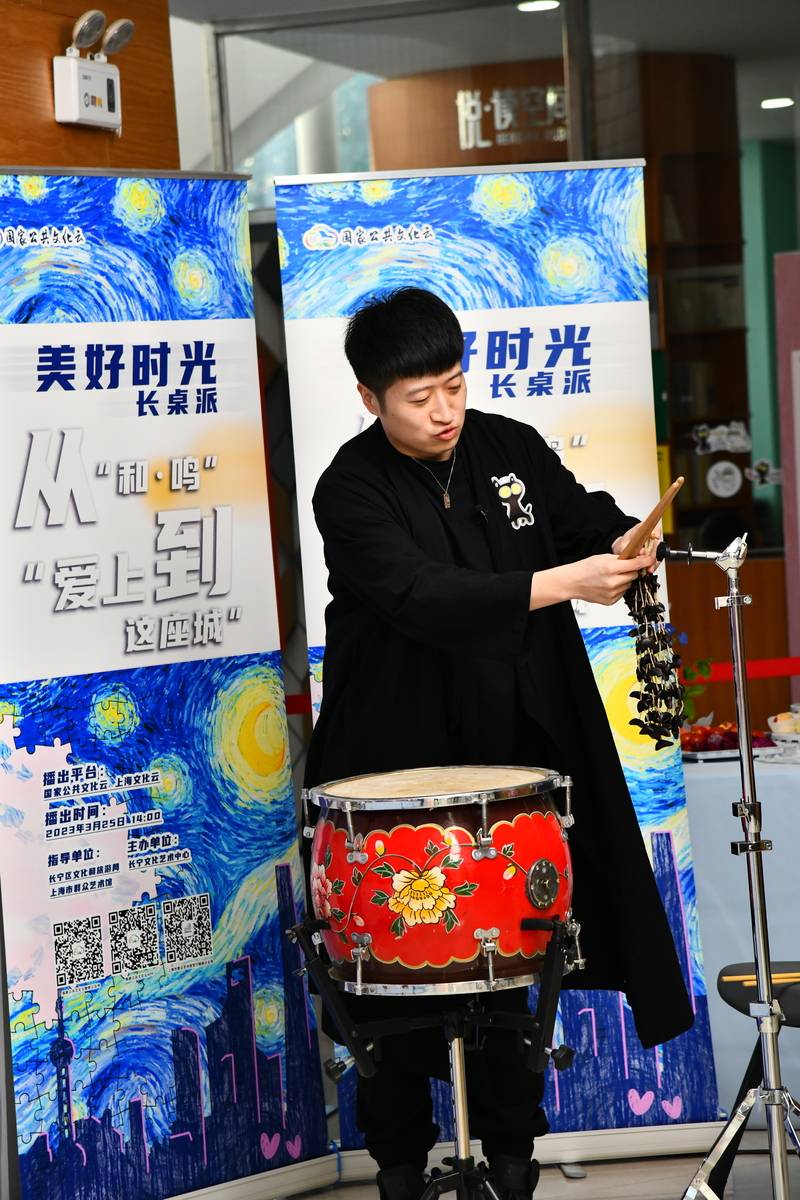 “城市美育日”活动期间,长宁区在开展线下音乐亭展演的同时,也开启了线上音乐会客厅直播。4月8日下午,长宁品牌线上直播栏目《“美好时光”长桌派》在国家公共文化云、文化上海云等平台开启直播。系列直播将选取长宁不同的文化地标,以饮食知识、民俗传统、民族文化、上海城市建设为主题。