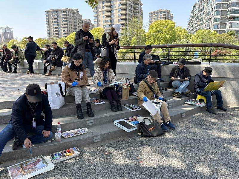 借此契机,“邂逅历史建筑——长宁区固体油画写生暨社会大美育”活动也于当天在上生·新所举办,邀请30位艺术家和线上预约的20位市民从长宁文化艺术中心出发,乘坐“何以爱长宁” 特色旅游大巴游览区内多个网红打卡点,聆听导览员讲解城市建筑故事。