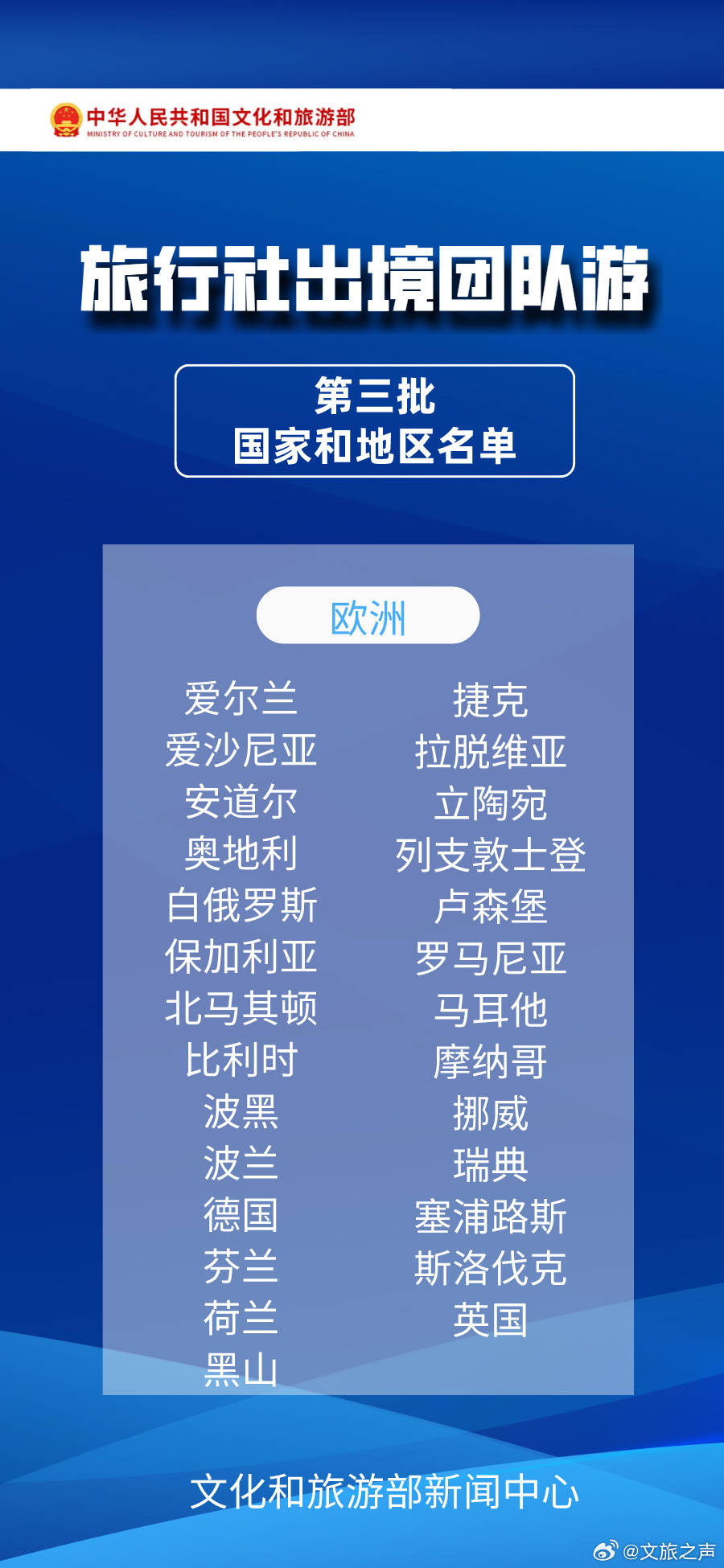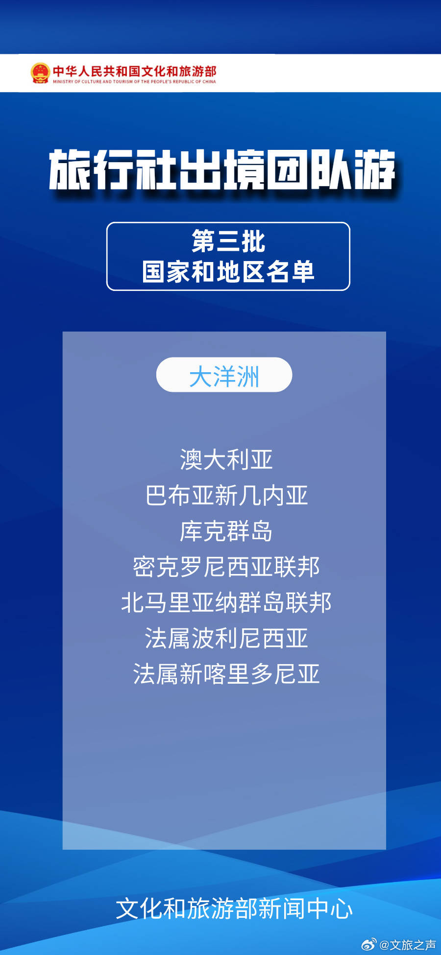 自试点恢复旅行社经营中国公民赴有关国家出境团队旅游业务以来,出境旅游市场整体运行平稳有序,对促进旅游交流合作发挥了积极作用。为贯彻落实党中央、国务院决策部署,进一步服务经济社会发展,即日起,恢复全国旅行社及在线旅游企业经营中国公民赴有关国家和地区(第三批)出境团队旅游和“机票+酒店”业务。各地要强化责任担当,指导旅行社严格落实团队旅游管理各项制度和规范,落实“一团一报”制度,加强对旅行社及在线旅游企业的监督检查,切实维护旅游市场秩序,保障游客合法权益。
