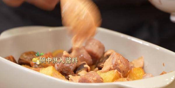 窍门:炸好的土豆和香肠趁热淋入酱料,可使其吸收效果更好。
