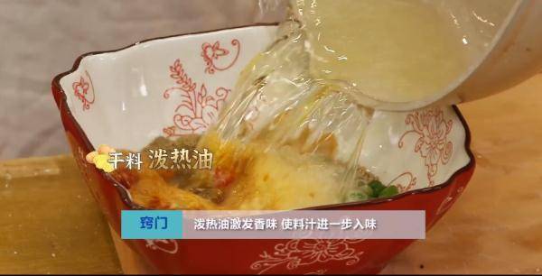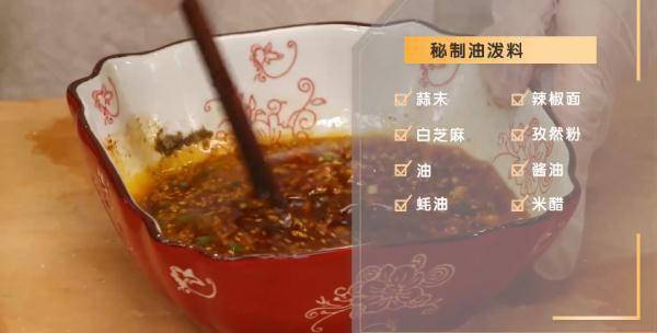 窍门:泼热油激发香味,使料汁进一步入味。
