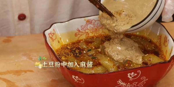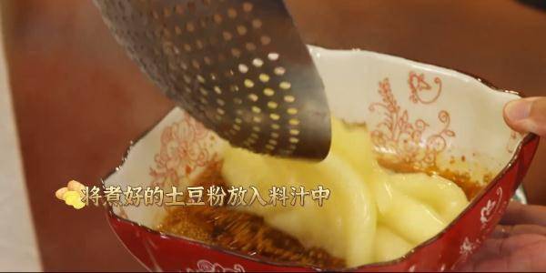 煮好的土豆粉捞出放入料汁中,加入麻酱、豆豉辣酱即可。
