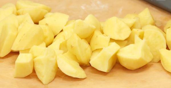 6个土豆削皮,将土豆切成锛刀块。