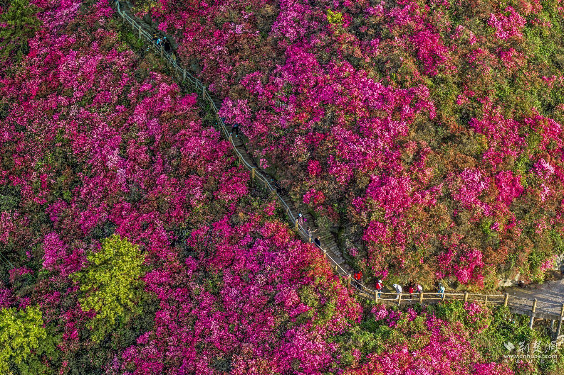 武汉木兰云雾山地处武汉市黄陂区,是一个5A级景区,景区内杜鹃花品种繁多,野生杜鹃花包含了以映山红、白鹃梅为主的7个品种,人工种植的300余个品种的杜鹃花盆栽也集中在景区竹林寺附近展出。过往游客可漫步杜鹃花海,迎着春风,伴着花香,俯瞰花海连绵,在“一树不同花”的“地球彩带”感受春的魅力。