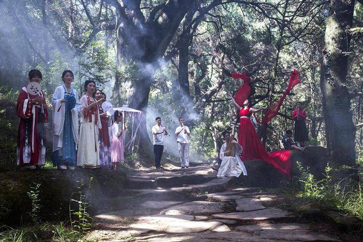游客自发在翠云廊拍摄情景短剧。剑阁县委宣传部供图